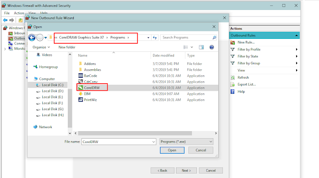 Pada dialog Windows Firewall With Advanced Security klick Outbound